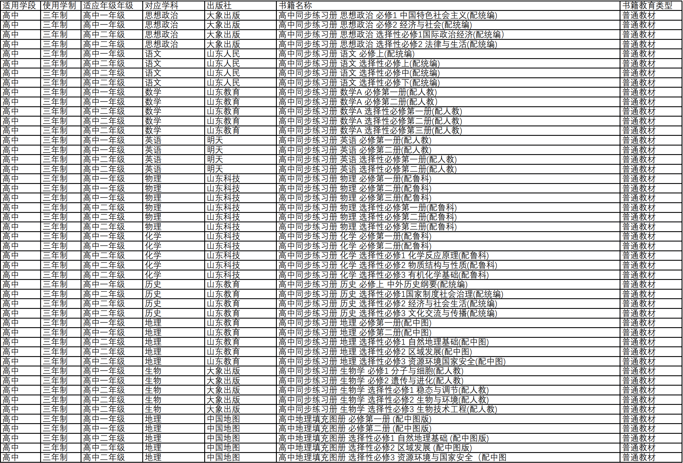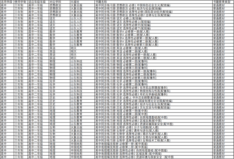 山东省济南第七中学2024-2025学年教辅材料目录