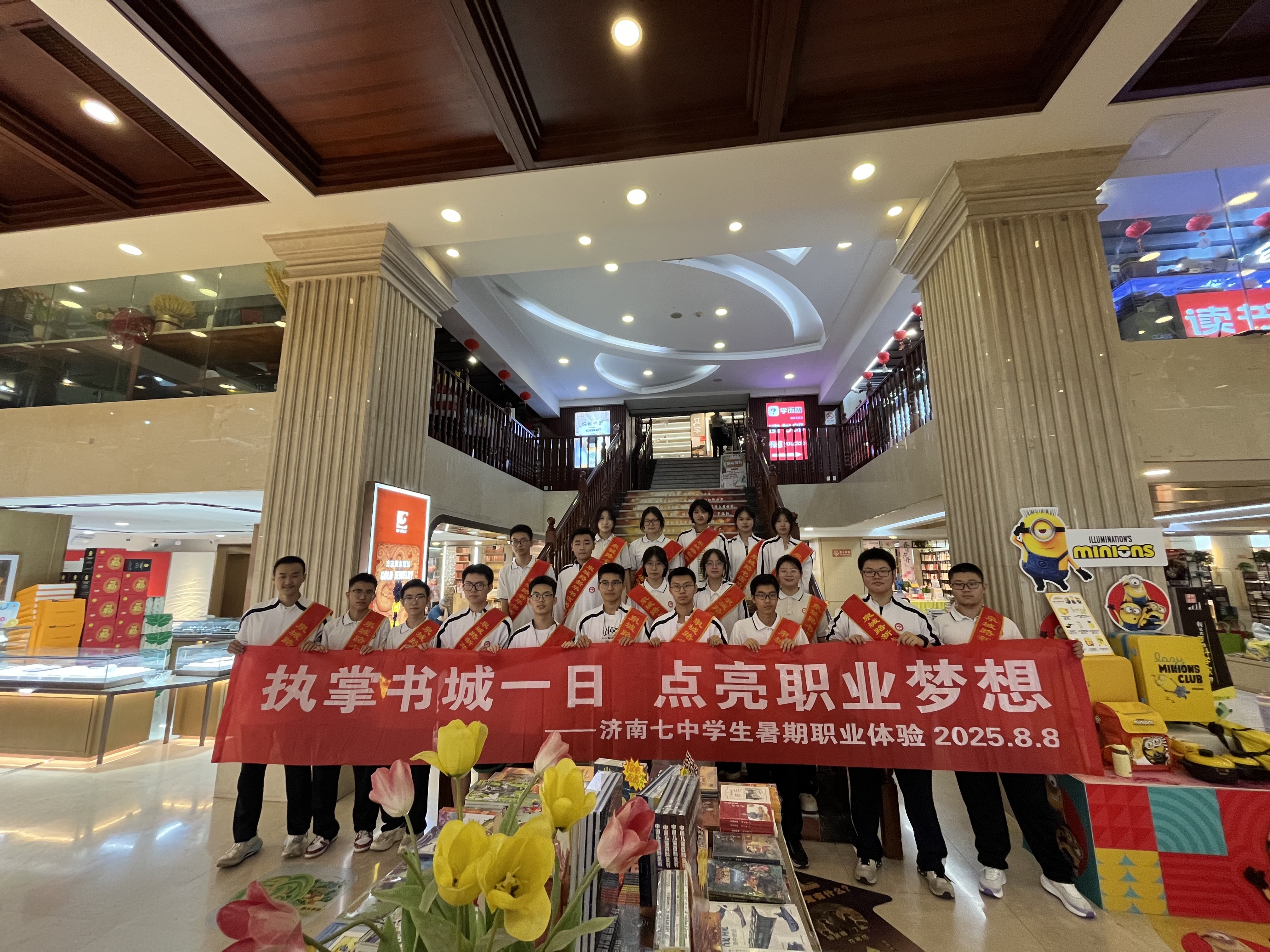 8月8日,济南七中学生走进济南市泉城路新华书店,化身“一日店长”,开启了一场特别的职业体验活动。