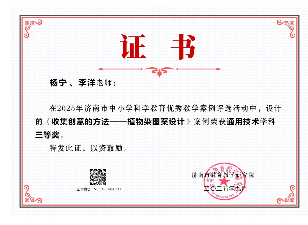 其中,刘树敏老师团队的《跨越山河探秘力之痕迹》荣获地理学科一等奖第一名,张衍洁老师团队的《生态系统的能量流动》荣获生物学科一等奖,杜丽萍老师的《搭建你的专属智能体》荣获信息技术学科二等奖,杨宁老师团队的《收集创意的方法——植物染图案设计》获通用技术三等奖,这些成果的取得充分展现了七中在科学教育领域的扎实积累与创新实力。 济南七中始终高度重视科学教育,打造“七彩格创”科学教育体系,以“务实创新、协同育人”为核心,积极推进课程改革与资源整合。学校不仅开发了《校园里的科学》等校本课程,还大力推进STEAM教育、实验教学与研究性学习,构建“校内+校外”双场域协同机制,依托“大中小幼”科学教育联合体,开展跨学段、跨学科项目合作。此外,学校积极引入人工智能教育,举办科技节等活动,为学生搭建丰富的科创实践平台。 此次获奖不仅是对教师教学创新和专业能力的充分肯定,更是济南七中科学教育成果的集中体现。获奖案例融合学科核心素养与数智化手段,注重实践探究与跨学科整合。学校将以此为契机,进一步深化科学教育课程建设,强化师资培养,拓展资源平台,推动科技创新教育高质量发展,持续打造具有七中特色的科学教育品牌。 初审:张现瑶 复审:亓莹 终审:王莉惠