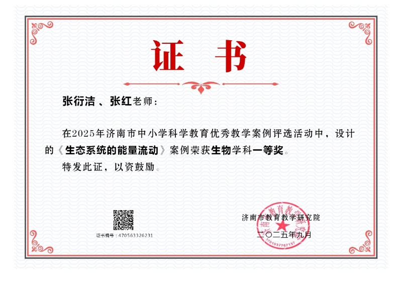 近日, 2025年济南市中小学科学教育优秀教学案例评选获奖名单公布,济南七中表现突出,参评案例获一等奖2项、二等奖1项、三等奖1项。