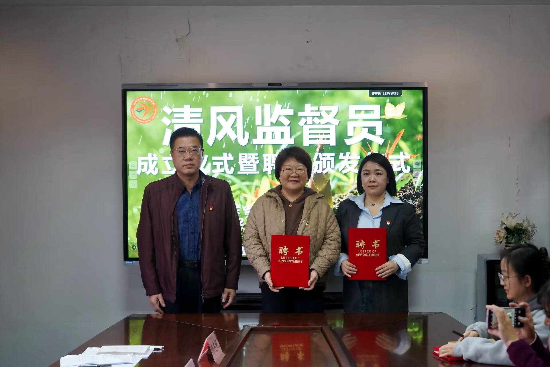 仪式由党群工作部副主任赵晓琳主持。学校党委书记张纪余首先介绍了“清风监督员”队伍成立的背景与意义,强调此举是学校党委贯彻落实全面从严治党要求、推动治理能力现代化的重要举措。纪委书记杨建银宣读了聘任决定。随后校领导为受聘的20名“清风监督员”颁发聘书。